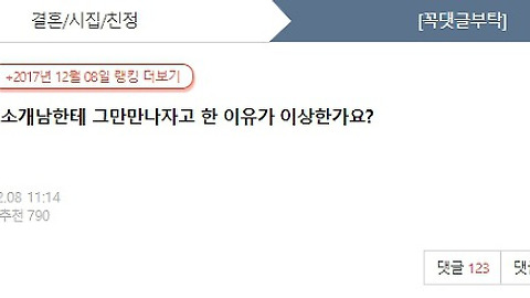 | 소개남한테 그만만나자고 한 이유가 이상한가요? (0) | 2017.12.10 |