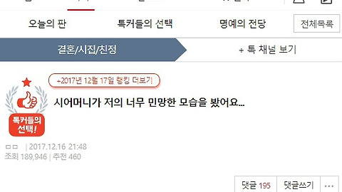 | 시어머니가 저의 너무 민망한 모습을 봤어요 (0) | 2017.12.18 |