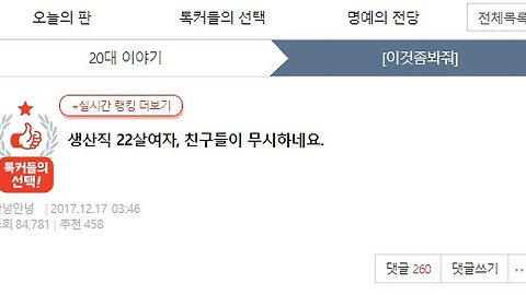 | 생산직 22살여자, 친구들이 무시하네요. (1) | 2017.12.17 |