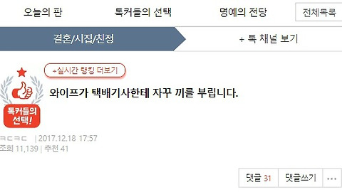 | 와이프가 택배기사한테 자꾸 끼를 부립니다 (0) | 2017.12.18 |
