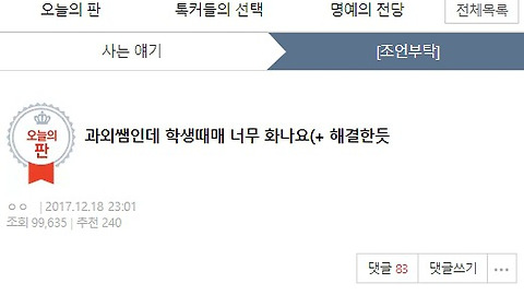 | 과외 선생님 인데, 학생이 너무 이상 합니다. 이상한 소리도 내고 (0) | 2017.12.19 |