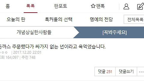 | 돈까스 주문했다가 싸가지 없는 X이라고 욕먹었습니다. (0) | 2017.12.23 |