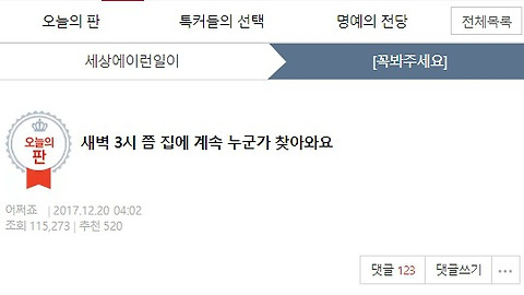 | 새벽 3시 쯤 집에 계속 누군가 찾아와요 (0) | 2017.12.22 |