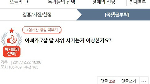 | 아빠가 7살 딸 샤워 시키는거 이상한가요? (0) | 2017.12.23 |