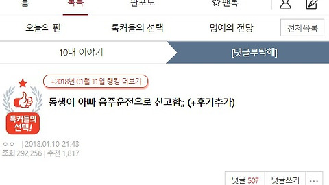| 동생이 아빠 음주운전으로 신고함;; (+후기 추가해요 ) (0) | 2018.01.13 |