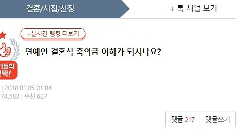 | 연예인 결혼식 축의금 이해가 되시나요? (0) | 2018.01.05 |