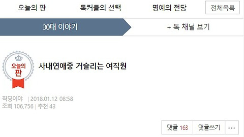 | 사내연애중 거슬리는 여직원, 계속 꼬리 칩니다 (0) | 2018.01.14 |