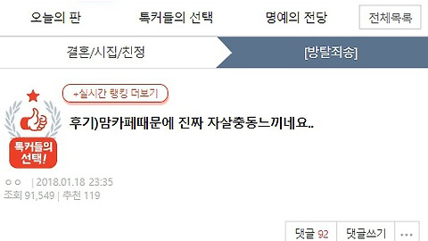 | 후기)맘카페때문에 진짜 치가 떨립니다. (0) | 2018.01.19 |
